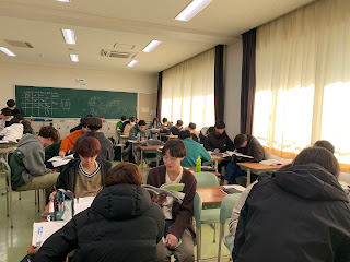 1年生の試験では、担当教員(非常勤講師)がお見えならないという不測の事態が起こりました。学生たちは複雑そうでしたが、やむをえません。